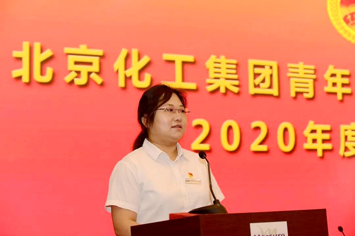 华腾拓展公司团总支书记吴莹芳、华腾化工团总支书记张世亮作经验交流发言,职防院团委副书记胡剑舞向全集团团员青年发出题为《不忘初心跟党走,青春奋斗正当时》的青年建功"十四五"的倡议。