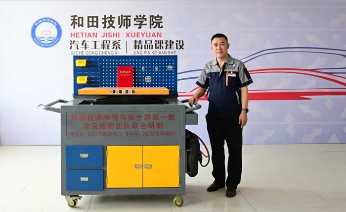 姚志刚老师在和田技师学院汽车系精品课建设中,先后编写了《汽车发动机构造与维修》《汽车发动机构造工作页》等教材。他还和其他援疆老师一起开发了智能安全升降机。同时,在项目推进过程中,深入了解本校老师们的专业提升需求,做到精准帮扶。