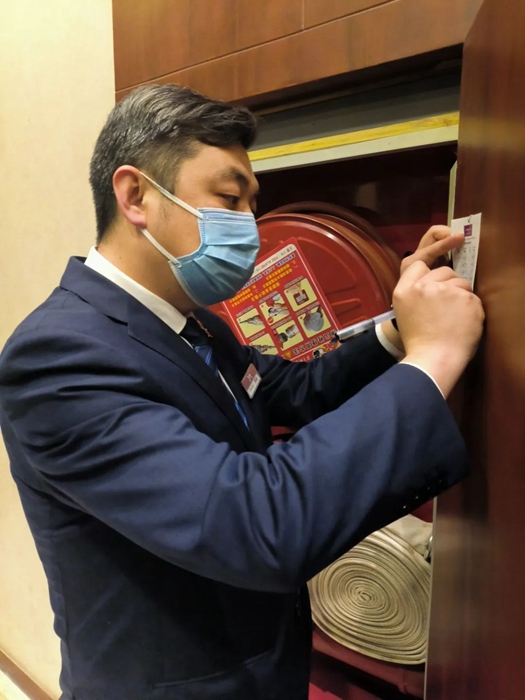 冬奥会接待任务结束后,酒店又分别在3月份和10月份接待了新冠肺炎密接隔离人员。季毅征尘未洗,又组织酒店中控室人员严格执行防疫指挥部的工作规范,严密监控隔离区的每个点位,发现违规行为及时报告。同时严把酒店出入口防护关,指挥调度送人、接人,以及工作车辆有序进入酒店,确保不发生时空交集。根据疫情需要,隔离人员的转运基本在夜间进行,只要有任务就有季毅的身影。