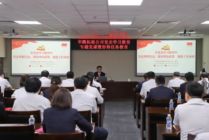 5月10日,开云在线登录总经理助理,华腾拓展公司党总支书记、董事长李泳以《在党史学习教育中坚定理想信念、强化理论武装、创造工作业绩》为题,向全体党员及职工代表讲授党史学习教育专题党课。