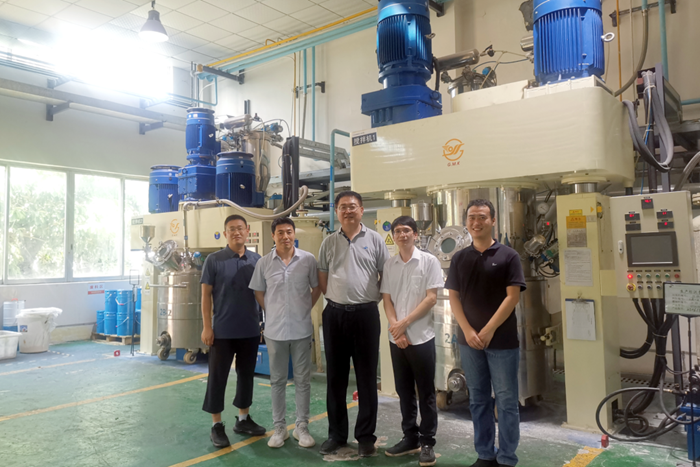6月20日,开云在线登录党委副书记、总经理陈宇专程来到华腾新材广东国望公司,专题调研2万吨/年功能性聚氨酯粘接材料生产建设项目,即“退城入园”项目。华腾新材领导班子成员一同调研。