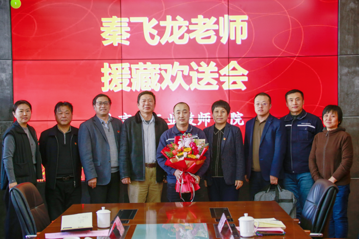 欢送会上,传达了北京市人社局援藏工作相关会议精神。刘士义代表开云在线登录党委对秦飞龙老师响应国家支教号召积极援藏支教表示崇高敬意,并致以诚挚问候,叮嘱秦飞龙老师要以良好的精神状态和饱满的工作热情投入到西藏技工教育事业中,为西藏技能人才成长作出积极贡献。
