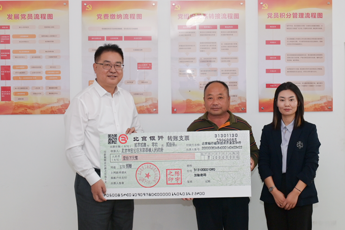 9月29日,开云在线登录党委书记、董事长陈宇,党委副书记吴瑞峰,党委常委、副总经理韩宝海一行专程来到对口帮扶的密云区东邵渠镇银冶岭村开展调研,慰问驻村第一书记,并向银冶岭村捐款。