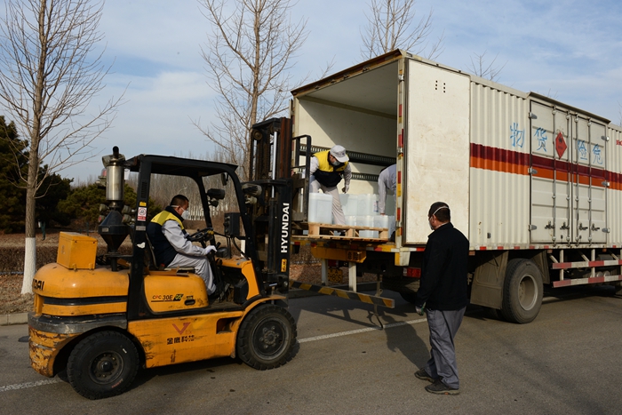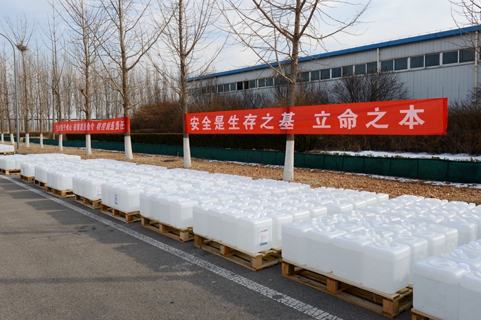 由于75%消毒酒精危化品的物殊性,分装、进库、配送全部需要通过一线职工通过人抱肩扛、手工装拍完成。面对艰巨任务,在领导班子带领下,公司多名中层干部、业务骨干吃住在单位,克服了假期、防疫期间人员短缺,到货时间不确定等不利因素,有效组织精干力量完成了每日储存配送任务。同时,试剂所、化工厂、华腾天海要人出人、要车出车,全力以赴共同配合完成任务。
