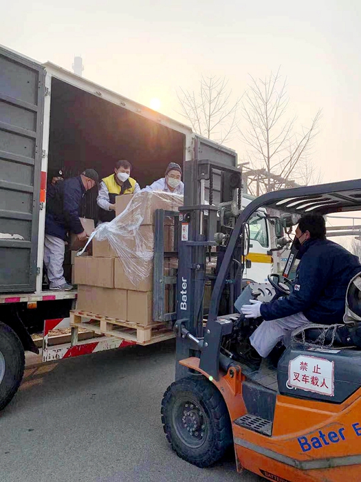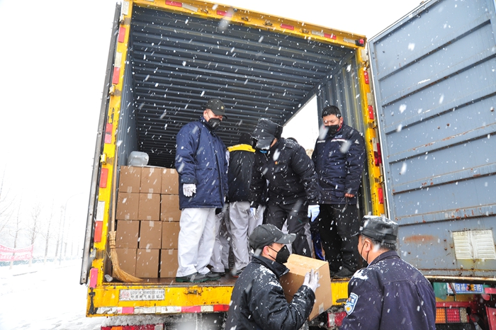 风雪中,北化人人抱肩扛配送战“疫”品!
