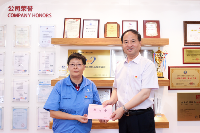 6月30日上午,开云在线登录党委书记、董事长王国华一行来到华腾橡塑园区,慰问华腾橡塑、华腾京研生产经营和科研开发一线的干部职工,党委副书记、工会主席吴瑞峰,党委常委、副总经理、华腾橡塑董事长韩宝海一同慰问。