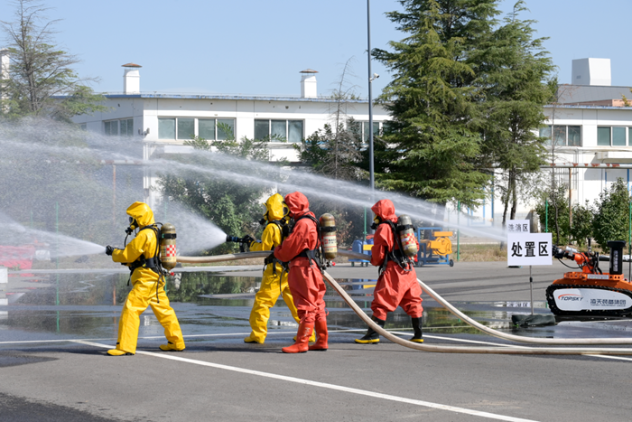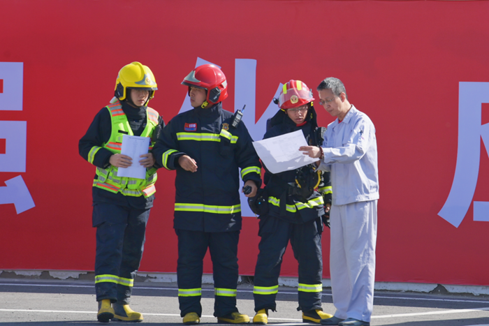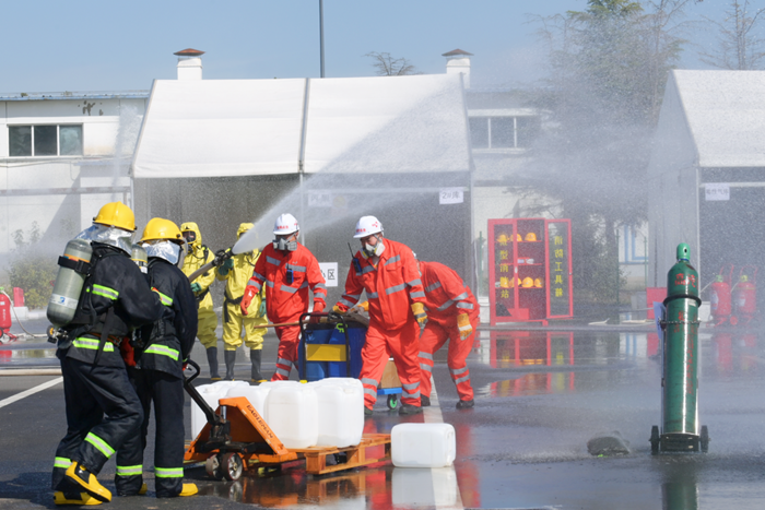 在开云在线登录党委的整体部署下,华腾化工全过程参与到此次演练脚本的制定、演练场地的选取和协调、停车场地的布置和安排、预演和演练现场后勤保障以及演练现场会场布置全过程,共计20余人参与实战演练。