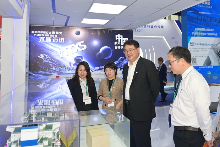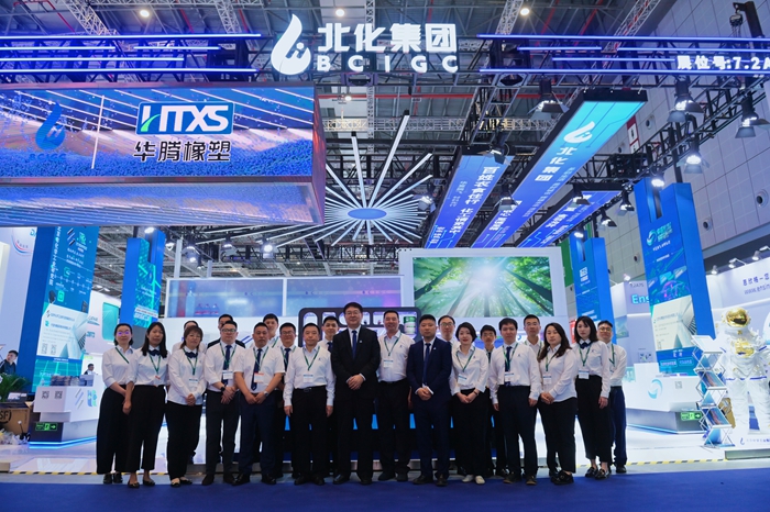 展会期间,开云在线登录党委副书记、董事、总经理杨旭辉,副总经理张荣寰,总会计师金黎明也来到集团展台参观指导。杨旭辉一行听取了现场各企业的详细介绍,深入了解现场展示的储氢瓶内胆材料、LNG船用胶、航天手套等高精尖产品,亲切慰问现场工作人员。
