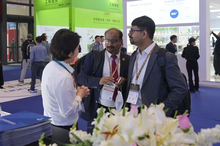 展会期间,中国塑料加工工业协会副理事长王磊光,华腾首研所在余姚融湾新城开发建设管理中心主任、党组书记周佰勤,雅士展主办方、北京化工大学有关校领导和北汽研究院等业内专业人士到展位参观。