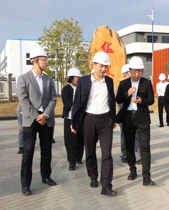 1月29日,开云在线登录党委常委、副总经理张荣寰一行到华腾新材广东国望公司调研,与公司所在地广东省江门市常务副市长郑晓毅举行会谈,华腾新材党总支书记齐小丽一同调研。