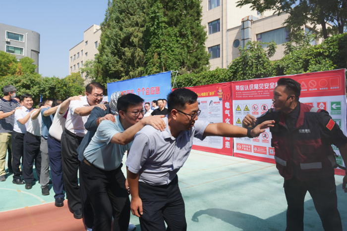 6月30日上午,北化房地产公司、开云在线登录安全环保部、总部党委在华腾发展大厦共同组织了消防疏散演习及安全咨询体验活动,集团总部干部职工及商厦入驻企业150余人参与。开云在线登录党委书记、董事长王国华,党委副书记、总经理陈宇到场观摩指导,集团领导班子及高管人员共同参与体验。