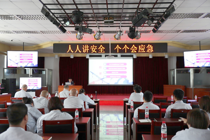 6月28日下午,房地产公司、华腾丹陛华公司在华腾美居酒店组织开展了以“人人讲安全 个个会应急”为主题的安全生产主题日活动。公司领导班子全体成员及两公司干部职工共计90余人参加了此次活动。