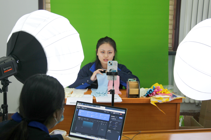 随着直播带货的形式越来越受欢迎,华腾橡塑紧跟潮流,于2022年11月正式注册开通了抖音蓝V账号,今年2月,华腾橡塑新搭建的实景直播间正式投入使用。从简易的绿幕直播间,搬到富有生活气息的“厨房”,直播实时在线观看人数明显增加,下单转化率也得到显著提升。另外,华腾橡塑还充分利用实景直播间进行短视频拍摄,以情景化、故事化的小视频,对手套产品进行软推销。